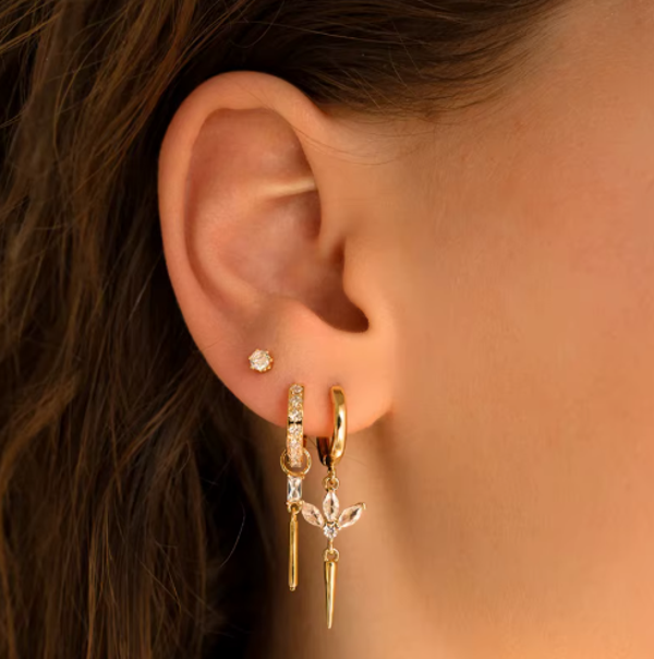 De Lena Drop Earrings combineren een fonkelende hoop met een heldere baguette-steen en een slanke gouden drop. Het ontwerp is minimalistisch maar toch chic, waardoor ze subtiel opvallen zonder te overdrijven. Licht om te dragen, elegant bij elke outfit en perfect voor wie houdt van rustige sparkle.