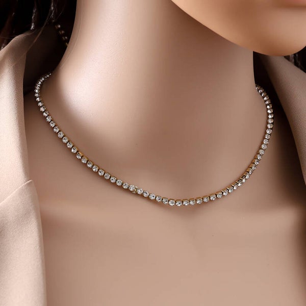 De Midnight Glow Ketting is een luxe ketting met een rij fonkelende steentjes die prachtig oplichten in het licht. Het ontwerp is tijdloos, chic en geeft elke outfit meteen een feestelijke touch. Draag ’m solo voor een rustige sparkle of combineer ’m met andere kettingen voor extra glam.